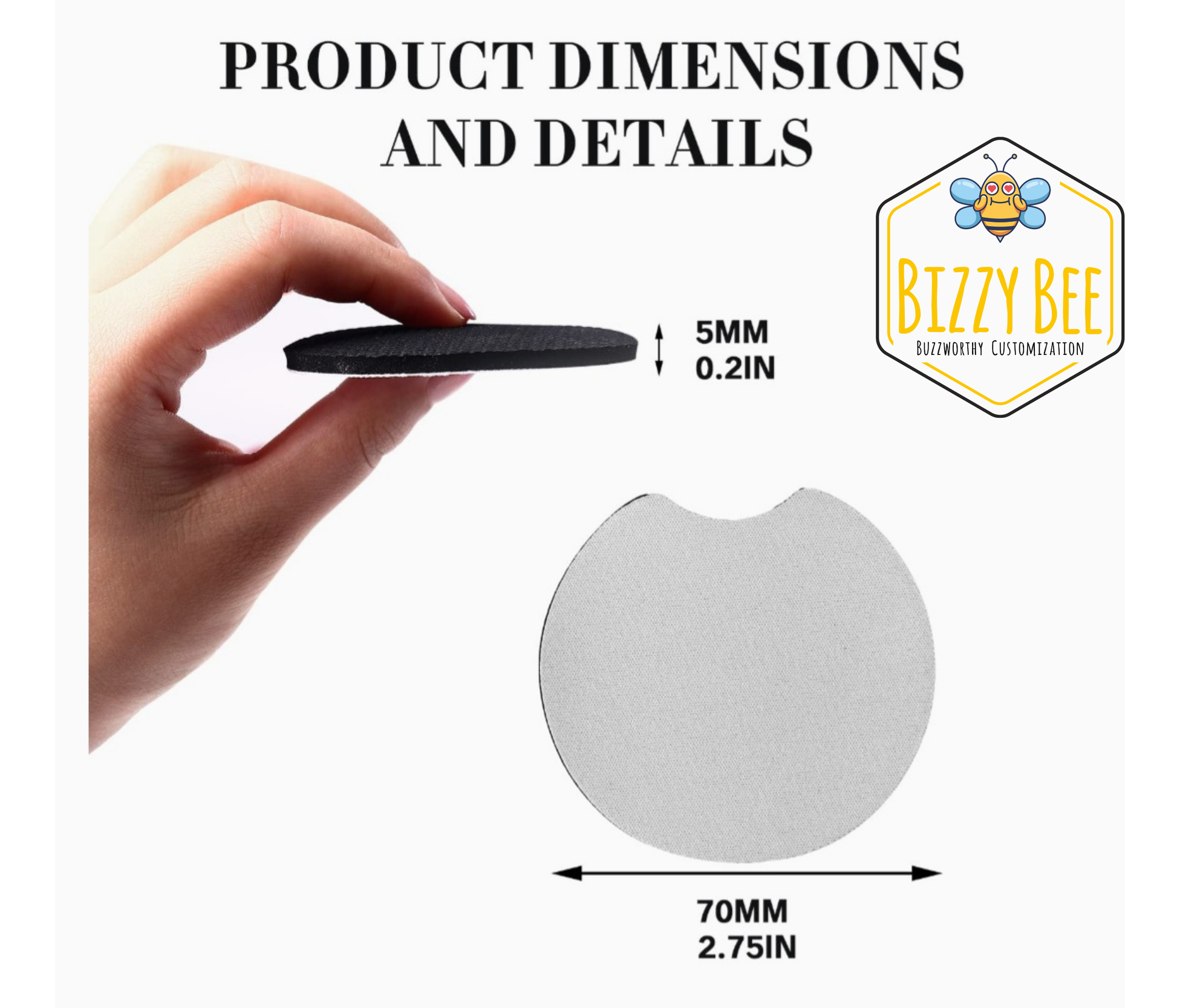 Car coasters are made from super absorbent neoprene and polyester material, making them the perfect addition to your cup holder. No more sweat puddles from your favorite ice-cold drink! They are easy to clean and won't fade, peel, or crack when wet or dry.